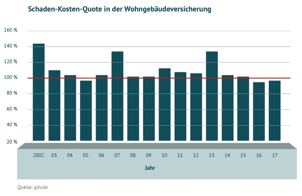 Sie haben bei der Schadenregulierung sämtliche Fristen und Vorschriften befolgt und dennoch will die Gebäudeversicherung nicht zahlen oder die Leistungen kürzen? Ein Anwalt für Gebäudeversicherung kann Ihnen in diesem Fall weiterhelfen und für Sie Ihre Rechte durchsetzen. Die Versicherungen haben oft eine äußerst hohe Schaden-Kosten-Quote. Das heißt, sie geben im Jahr mehr aus, als sie einnehmen. Das verdeutlicht eine Grafik des Gesamtverbands der Deutschen Versicherungswirtschaft e. V. (GDV).